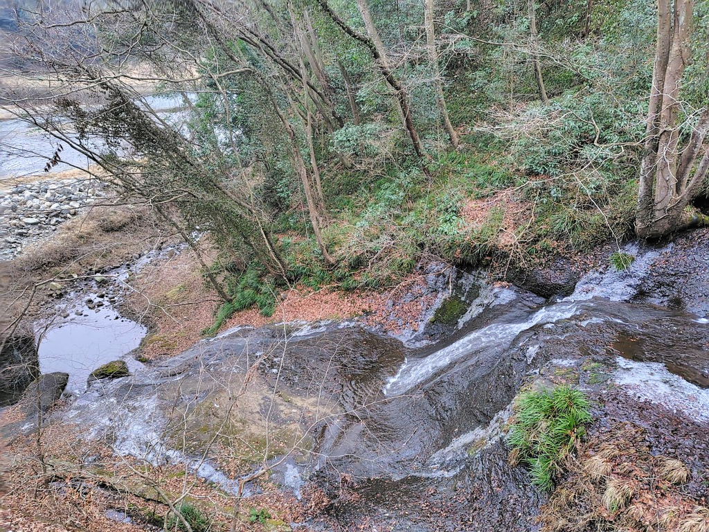 ハイキング中に通りかかり、白糸の滝を見てきました。水量は少なかったですが、落葉した季節はハッキリ存在を確認できます。岩に沿って流れる水がキレイでした。 (訪問:2026/01/11)