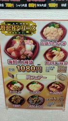 | 海鮮丼各種 ※一番人気どんまる丼やちょっと贅沢なプレミアム丼まで全150種類以上! お気に入りの丼が必ず見つかります♪  |