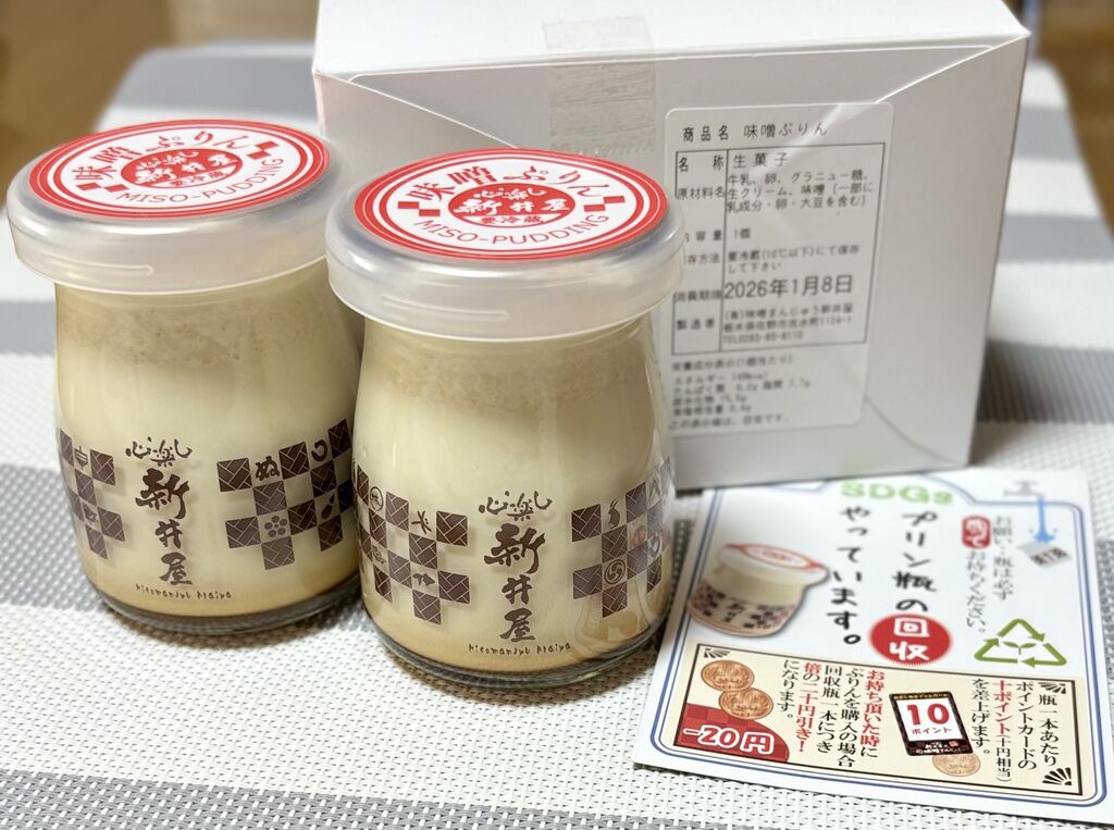 栃ナビポイントで「味噌ぷりん」をいただきました♪以前の訪問で気になっていた「チカラモチ(塩豆大福)」がラスイチだったので良い機会と思い、看板商品の「味噌まんじゅう(つぶあん)」と一緒に購入しました。「味噌ぷりん」は以前よりも味噌の風味が強く感じられ(私の体調の問題かと思います)、美味しくてますます気に入りました。 (訪問:2025/01/24)