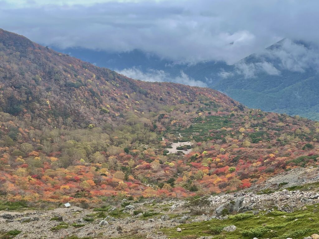 茶臼岳に広がる低木林帯で、ヤマモミジ、ナナカマド、ドウダンツツジなど、一面鮮やかに燃えるような赤に色づいた様子が目を見張ります。フォトスポットとしても名高く、紅葉のパノラマは一見の価値あり。安全な靴と暖かな服装でお出かけください。
