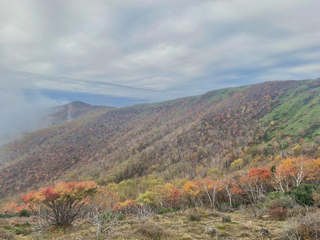 今、姥ヶ平の紅葉が見頃です。牛ヶ首からの見下ろした眺めや、姥ヶ平から手前の紅葉越しに見る茶臼岳が綺麗です。この日は生憎の曇りでしたが、晴れの日の紅葉は色鮮やかで見応え有ります^_^ (訪問:2025/10/13)