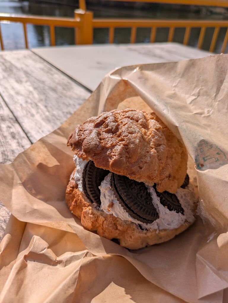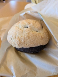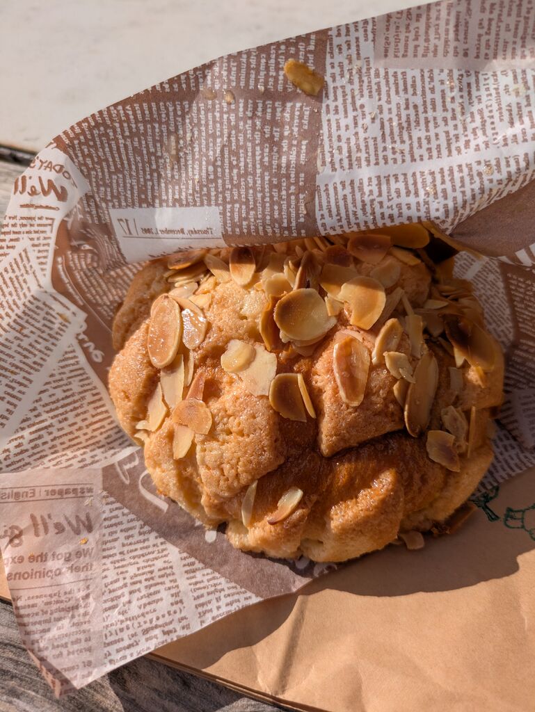 今回もCafe Santa Fe さんにお邪魔してきました。メロンパンの種類も多く選ぶのに迷ってしまいますが、アーモンドとサクほわホイップ、ダークチョコレート、ホワイトチョコ抹茶メロンパンを買ってきました。訪れる度に新商品が追加されていて、メニューを見る楽しみがあります。今回はシナモンロールのクリームチーズサンドが新発売されていました。メロンパン達は表面サクサク、中はもっちりとしていて、いつ食べても美味しいと感じます。ダークチョコレートとホワイトチョコ抹茶は、メロンパン生地とチョコの含まれた生地が分かれていて、よりサクもち感が味わえます。虜になるお味です。 (訪問:2024/04/11)