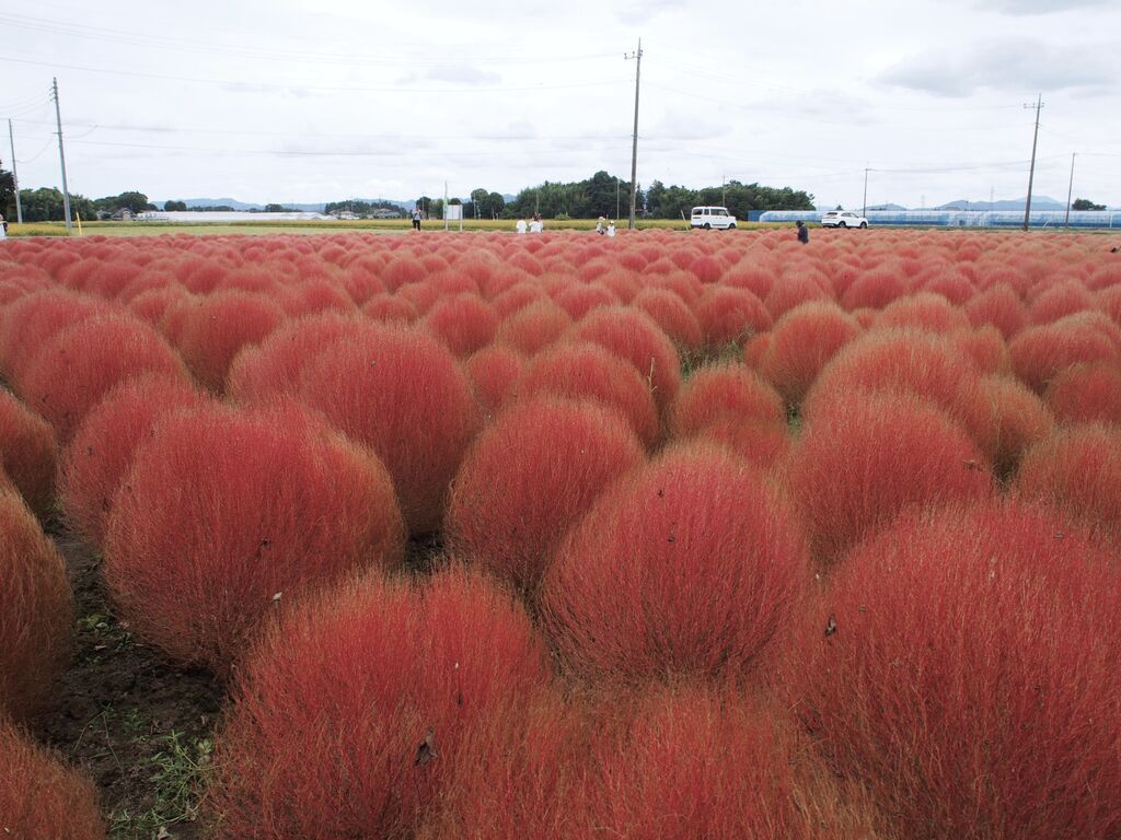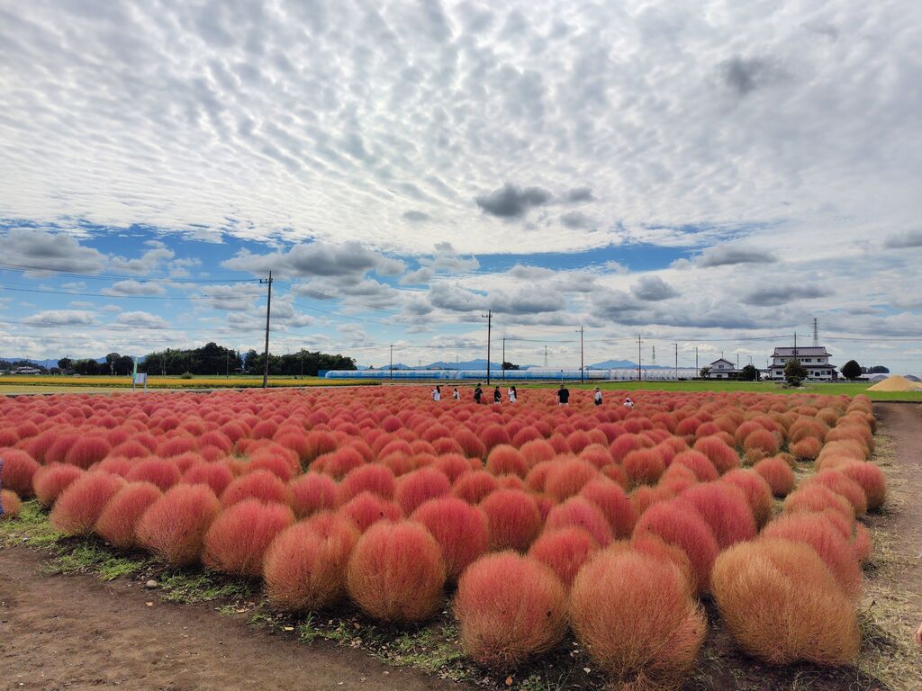 田んぼ一面に広がるコキアの壮大さをぜひ感じてください