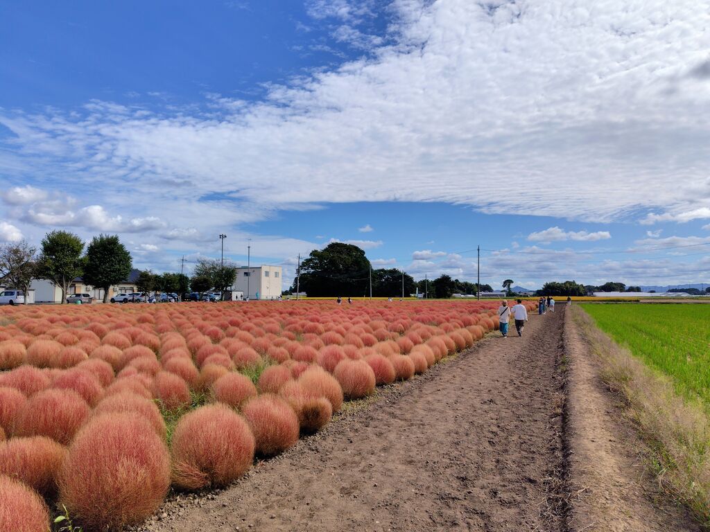 新聞記事をみて行ってみたくなり、初めて東高橋のコキア畑に来ました。隣の公民館に停められてピンクに色づき始めたコキアをゆっくりと鑑賞することができました^_^畑は周回コースがあり、中も通れるように整備されており、様々な角度から鑑賞や撮影を楽しめるようになっています。地域の方々、ありがとうございます。これからもっと赤くなると思うので、また来ようと思います。 (訪問:2025/09/26)