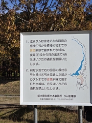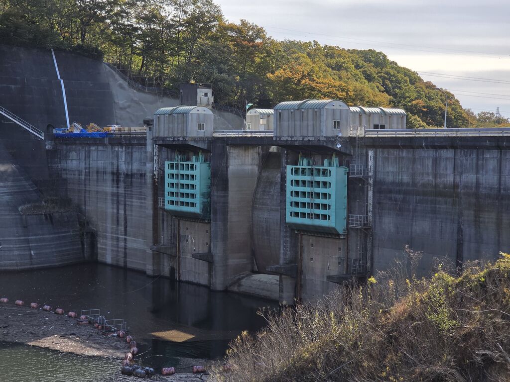 | 基本諸元 | 【目的】流水の正常な機能の維持・かんがい用水の供給・洪水調節 【形式】重力式コンクリート 【堤体積/堤高/堤頂長】11.5万m3/60.0m/240.0m |