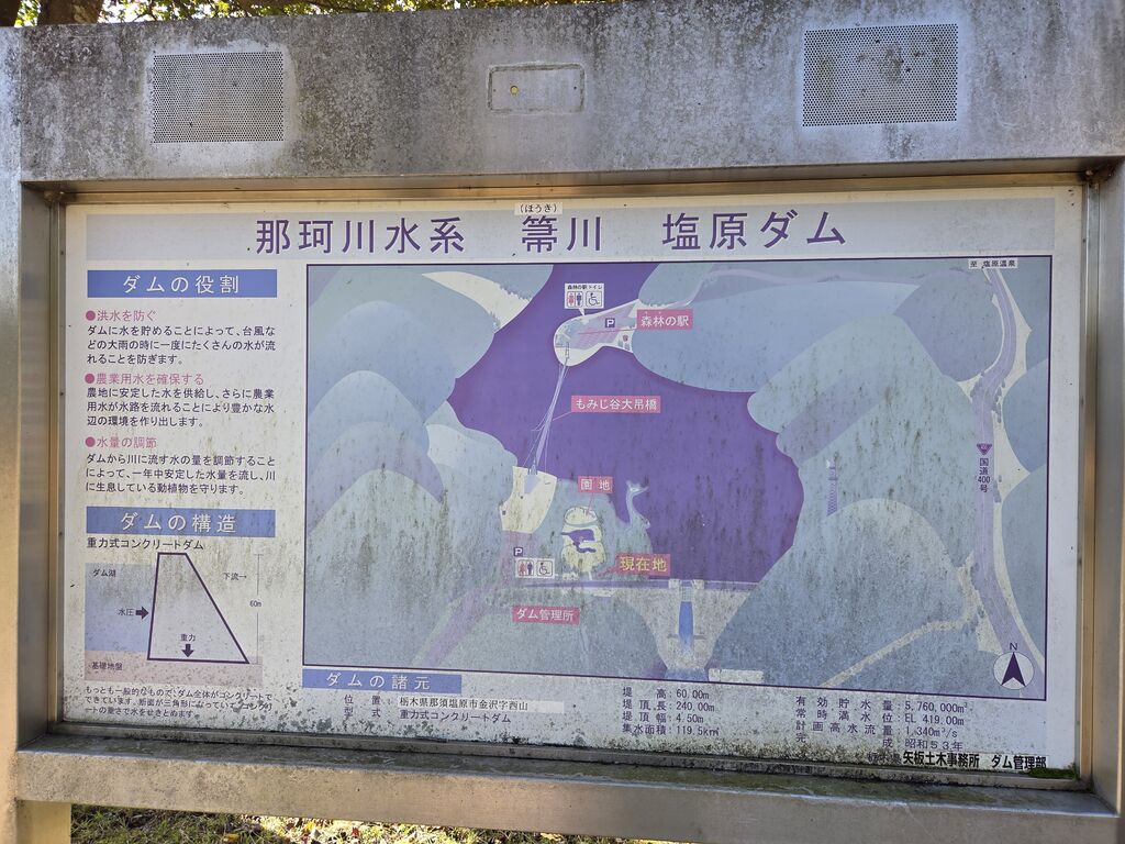 塩原ダム公園では東屋でヴォーカルグループが練習をしていてイイ歌声が響いておりました。ダム管理所に顔を出しダム発電所も含め3枚貰えダムカード1枚は限定カードとのことです。堤高60.00mの重力式コンクリートダムはダム湖に箒川の水を湛え渓谷を彩る景色もコレカラの時期は更に見映えがしそうです。 (訪問:2023/11/05)