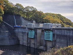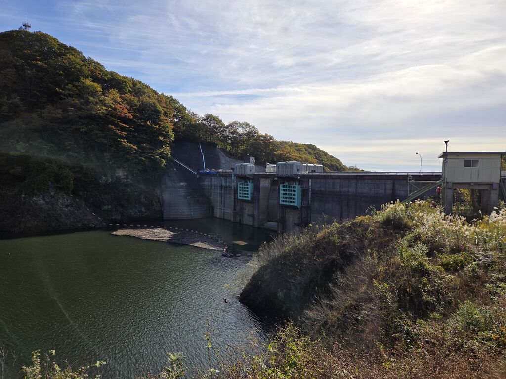 塩原温泉、もみじ谷大吊り橋を渡ると、公園があり、恋人の聖地記念碑があり、そして、この塩原ダムの景観を観ることが出来ます。なかなか迫力があって圧巻ですね。塩原ダムまで観察する事が出来て大変良かったです。 (訪問:2025/11/03)
