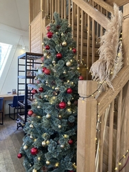 ママ友3人の2025年ラストランチ♡こちらのマツガミネコーヒー、グリムの森さんにお邪魔してきました〜ლ(´ڡ`ლ) お天気に恵まれて、30分ほどのミニドライブでした〜♪ グリムの森の中に敷地内にあります。趣きある建物、ステキ♡店内に入るとクリスマスツリーがお出迎えしてくれました(*^^*) 前もって予約をしていたのですが、まだ空席ありましたので、お好きな席どうぞとの事。せっかくなので、ドーム型の2階へ↑↑テーブル広めで良い感じ〜(^^)悩みに悩んで、各々ミートドリア、グリーンカレー、きのことさつまいものイエローカレーをセットで注文しました!! サラダのドレッシングが美味しくてレシピ知りたい(笑)ナッツが効いてます♪ ワタクシの注文したイエローカレーは、マイルドで甘口に仕上がっていて、とっても食べやすかったです。家庭では食べられない味、さつまいも大好きなので嬉しすぎです(^^♪そして、噂のパンケーキは30分焼き上がり時間がかかるのことで、事前予約して3人でシェアしました★ふわっふわで、女子は絶対これ、テンションあがるはず〜。デザートは別腹。頼んで正解ッ❢重くなくて食べやすかったです!話も弾み、美味しいランチ♡癒し時間を堪能させて頂きました(^^)17時以降だと、クリスマスのイルミネーションも見られるとのことで、夜も素敵だろうなぁ〜!日が暮れる時間に行ってみたくなりました。丁寧に作られた、おしゃれランチ、次回は違うメニューも頂きたくなりました(๑´ڡ`๑)ごちそうさまでした〜。美味しく頂きました❢ (訪問:2025/12/10)