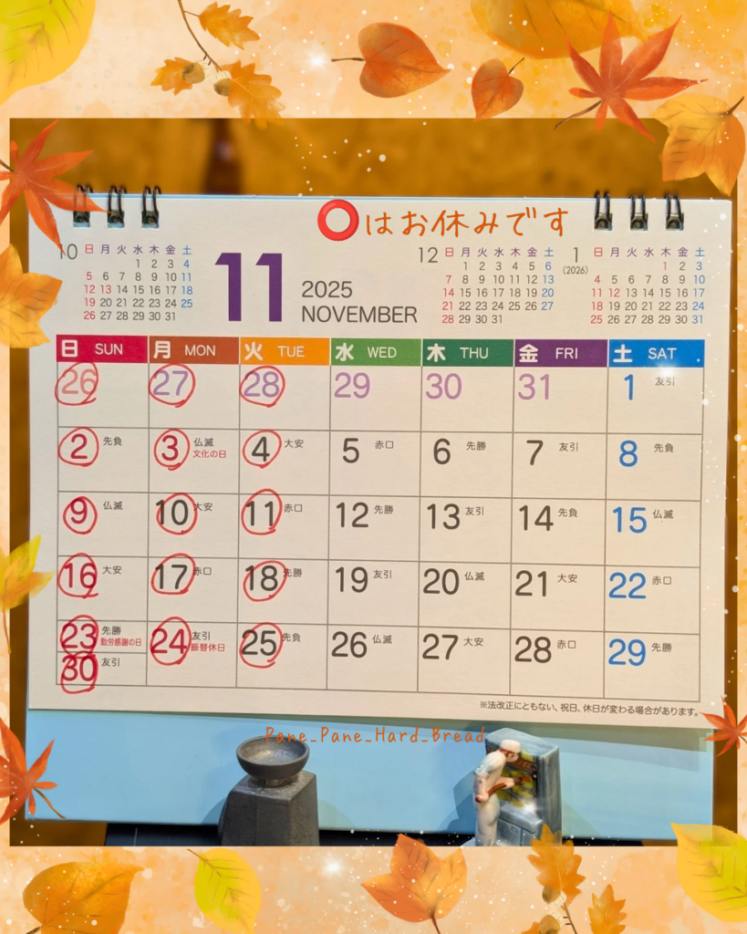 月曜日 火曜日 日曜日 季節により変更もございます。 |