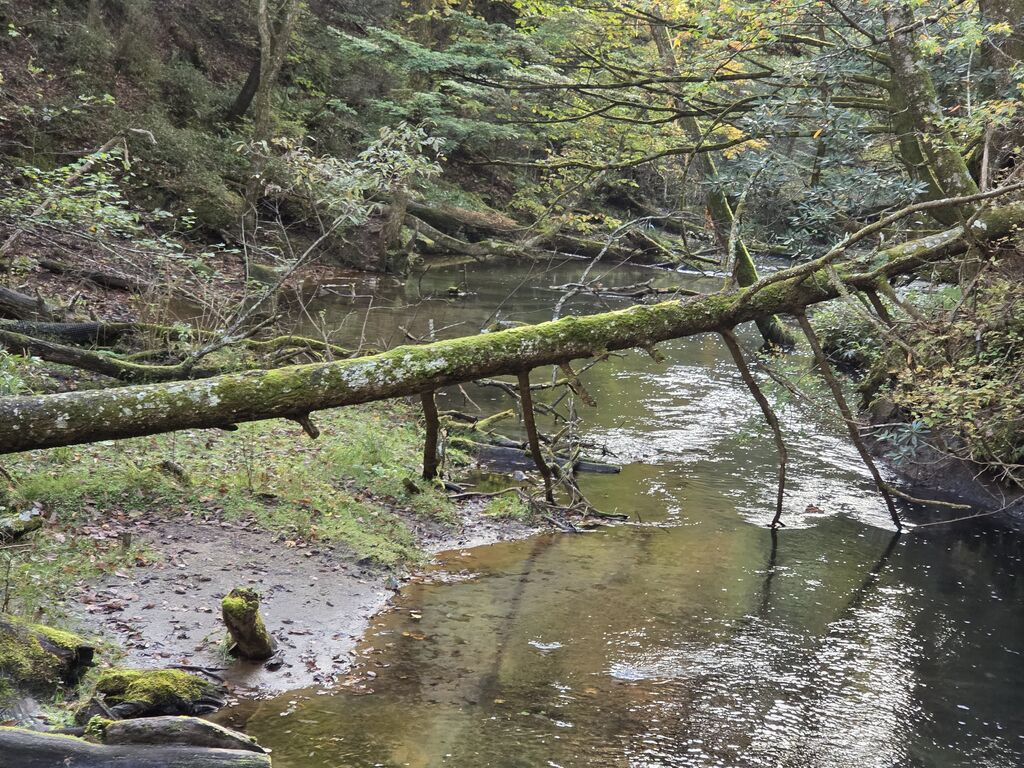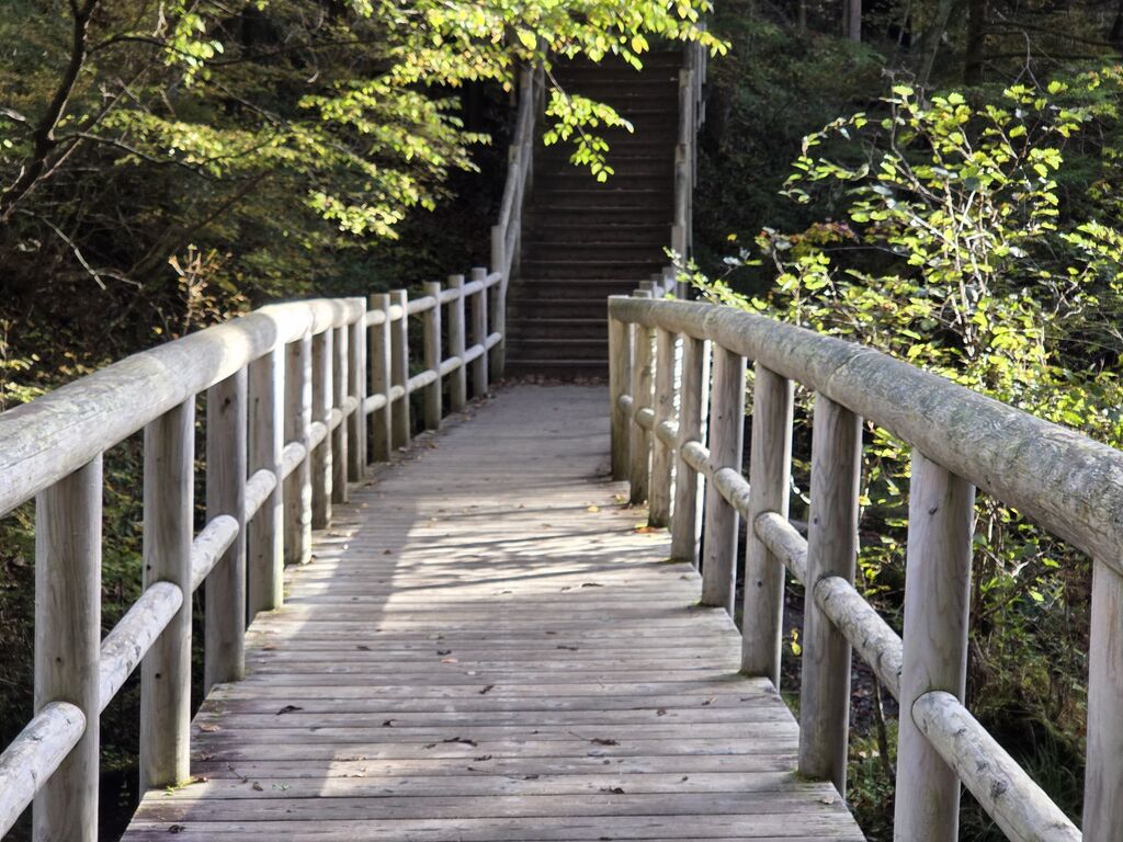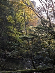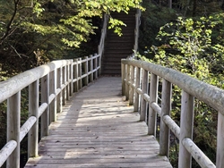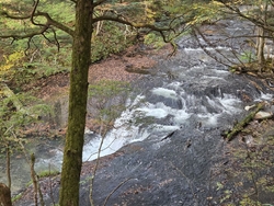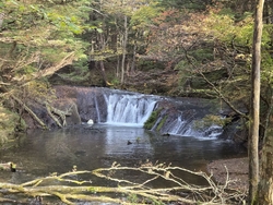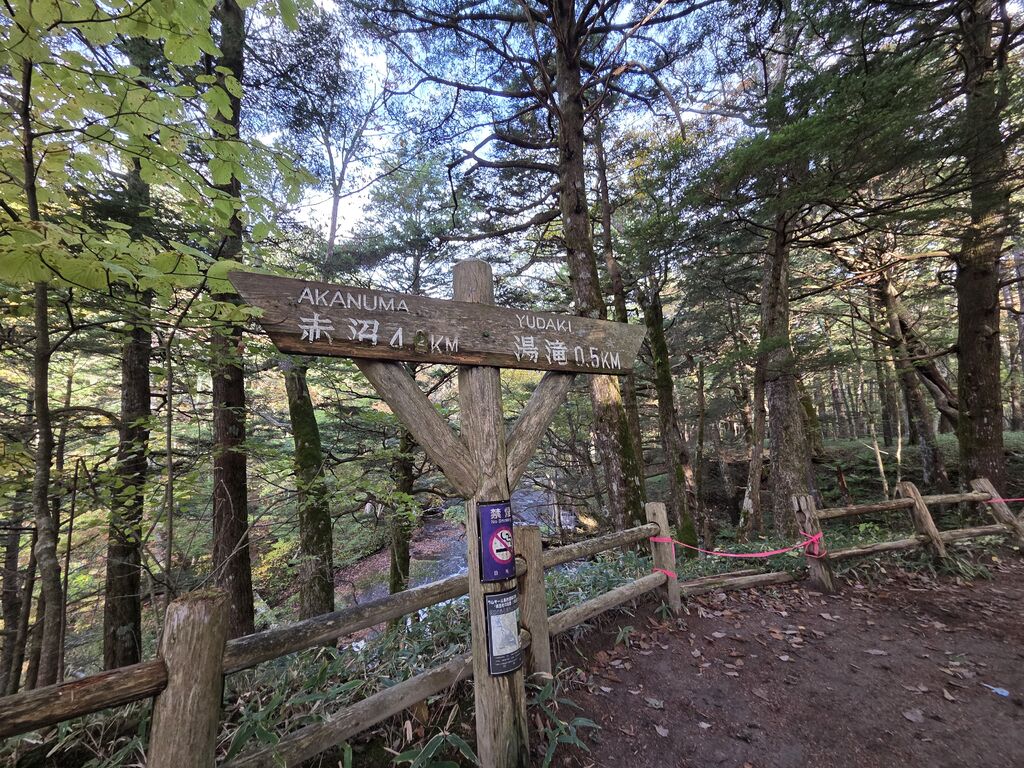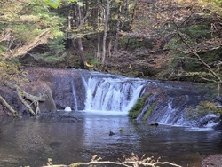 この日は、生まれて初めて小滝を観賞にいきました。湯滝に比べると可愛らしい小さな滝です。湯滝から、森の中の木道の遊歩道を歩きます。途中で熊避けの鐘を、鳴らしました。湯滝の川の水質はとても綺麗でした。 (訪問:2025/10/18)