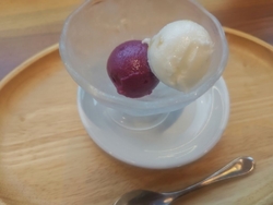 インターパーク付近のお店ですが道路側から見ると何屋さんかはわかりにくく、気になっていましたがついに初めての訪問。平日の開店時間少し前に行きミナテラスさんの全貌をチェック、レストランだけではありません。写真のレイアウト図参照して下さい。注文したの「海賊風チキンドリア」1180円「プラスデリセット」650円で日替わりデリ+プチデザート+ドリンクが付きます。「日替わりデリ」の「デリ」とは、ドイツ語の「デリカテッセン」の略で、調理済みのお惣菜、季節の野菜を使ったサラダや、鶏肉の煮込みで5、6種類から3つ選びます。写真のお洒落なアイスはJAF会員の特典だから会員の方はお忘れなく、会員証を提示して下さい。素直にメインの海賊風チキンドリア、それに日替わりデリセットとも美味しかったです。添付したメニューのどれも美味しそうだし、今回は注文しなかったケーキもめちゃ美味しそうだから次はケーキも付けたいと思います。 (訪問:2026/01/16)