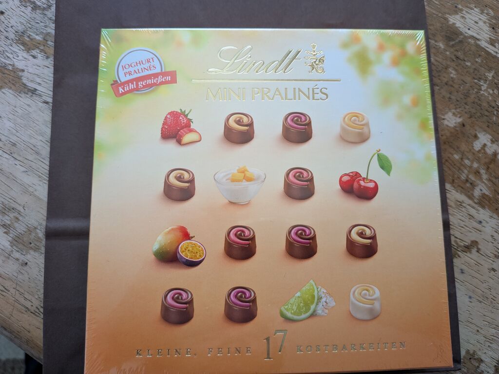 リンツショコラブティック&カフェで、ペアリンドール5p461円・ミニプラリネヨーグルト90g1,164円をいただきました。もともとの販売価格がペアリンドールは1,180円、ミニプラリネは1,900円。アウトレット価格だけでもかなり値引きされているのに、アプリ会員になるとお得なクーポンもらえる上に、更に5%引き。とんでもない値引き率です。賞味期限が近いとは言ってもまだ余裕あります。だって、すごいおいしい。あっという間に食べきる自信あります。で、ひとくち。さすがリンツ。超濃厚だけど、決してしつこくない。癒されます。あと一つ、あと一つと思っているうちに、やっぱ、なくなりました。今日中に食べきるかも、と思っていたらほんとに食べちゃいました。レシートのアンケートで、100引きクーポンいただけるので、またお伺いします。 (訪問:2025/11/07)