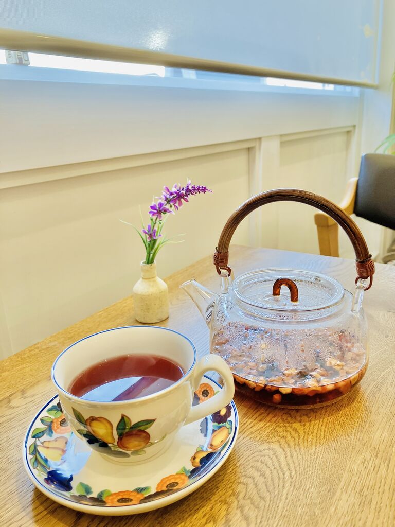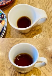 パープルとレッドを綺麗に足した美しい色合いの【マンゴーとオレンジのフルーツティー】をいただきました。マンゴー&オレンジと云うよりもローズヒップの酸味が主張してました。ハイビスカスやその他諸々入ったブレンドティー!五感の良い方は、マンゴーとオレンジが感じとれるのかも知れませんね^_^今日は、グアテマラ、コロンビアの試飲ありがとうございます♪ (訪問:2025/11/08)