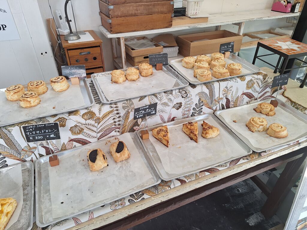 当店は甜菜糖をにこだわったスコーンやさんです。焼きたてが一番乃おすすめです。その他、プリン、チーズケーキなど冷たいお菓子と素朴な焼き菓子をはじめ、自家製ドライフルーツやジャム・シロップなどひとつひとつ真心込めて作っています。