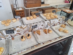 今市の農産直売所にこりさんにお邪魔した時こちらのお品を発見!SAなどで良く拝見しており、行きたいなぁと思っていたのもあったので、ためしに『ぐるぐるスコーン(れもん/アップル)各224円(にこり特価))』をゲットです。にこりさんが1周年記念ということもあり、このスコーン、20%オフと言う嬉しい価格に。スコーンの生地を細長く伸ばし、その生地の上にトッピング具材を載せてぐるぐる巻いて焼いたスタイルのスコーン。お陰でどこをかじってもたっぷりの具材に当たり、美味しく嬉しい‼レモンピールたっぷりのレモンは、ほんのり苦味も感じつつ、レモンの酸味と香りが後を引くうまさ☆煮林檎たっぷりの林檎は、甘味たっぷりでこちらも絶品♪どちらも美味しく、是非とも次回は店舗にお邪魔したくなりました! (訪問:2025/09/20)