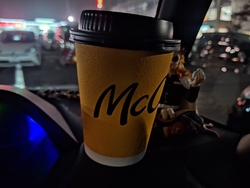 買い物帰りに娘と小腹が空いたねとサクッとモバイルオーダーでテイクアウト☆私は温まりたいとホットコーヒー、娘はやっぱりシェイクをチョイス。ポテトLサイズ250円やってました!そして、三角チョコパイ黒も~と思ったら、ティラミスも5年ぶりに復活していました!"ザクとろ"食感がより一層パワーアップして美味しいです(^ー^) (訪問:2025/11/09)