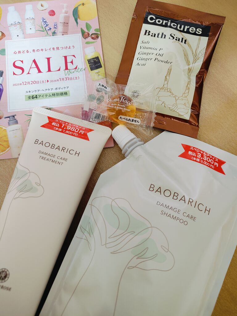 こちらの店舗での購入は初めてですが、セール商品も多くシャンプーとトリートメントを購入です。お得に購入出来ました。LINE特典でバスソルトいただきました。お得に購入出来るのでお試しもしやすいですね。 (訪問:2025/12/22)