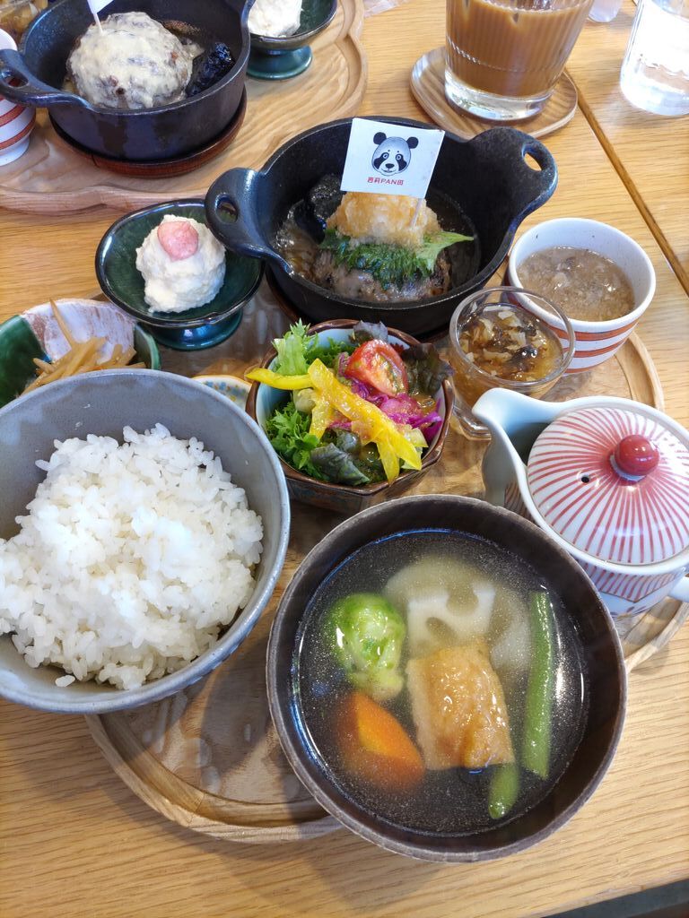みなさんの投稿を見て行きたかったお店です。休日は予約を受け付けていないと言う事だったので、友達と待ち合わせ時間よりも早めに行き30分ほど並びました。待っている方が6・7組いましたが思ったよりスムーズに進みました。待ち時間にメニュー表を見てお料理を決めようと思ったのにどれも美味しそうで、結局店員さんにおすすめを聞いたりしながら1番人気のご飯のセットを注文しました。すごく内容が豪華で友達にもこのお店に来て良かったと喜ばれました。熱々の牛肉100%のハンバーグはもちろん美味しかったけどご飯を1/3残して作る豆乳のお茶漬けが絶品でした。友達が食べたパンケーキも美味しそうでしたよ。時間がない時はパンだけ買いに行くのも良いですね。お店のキャラクターも可愛かったです。 (訪問:2026/02/23)