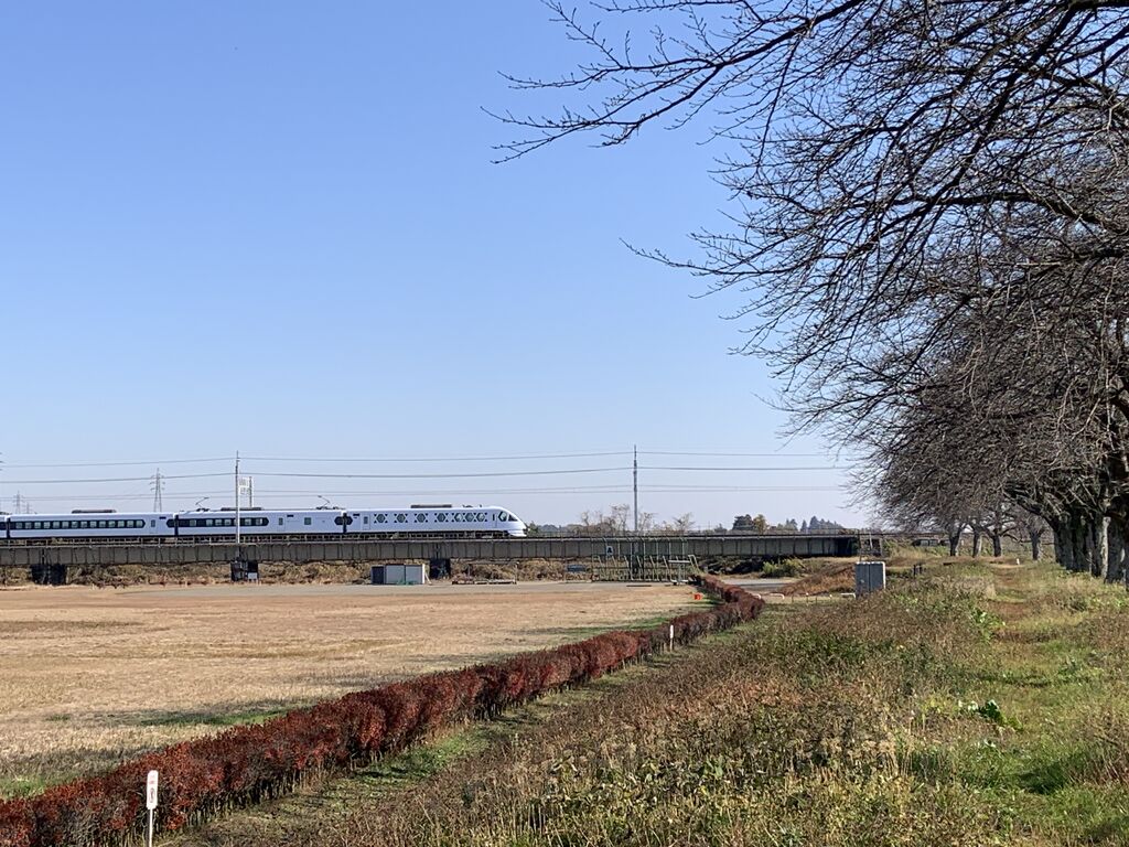 春には美しい桜並木が!グランド横では東武日光線の電車の姿も!