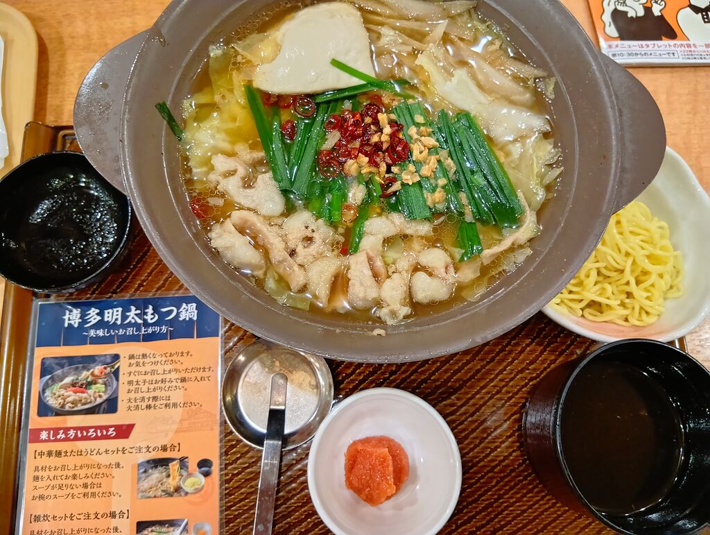 今年もガストでもつ鍋が食べられてありがたいです♪「博多明太もつ鍋 あごだし醤油 中華麺付き」1340円を美味しくいただきました✩固形燃料で最後までアツアツなのも嬉しいです! (訪問:2025/11/14)
