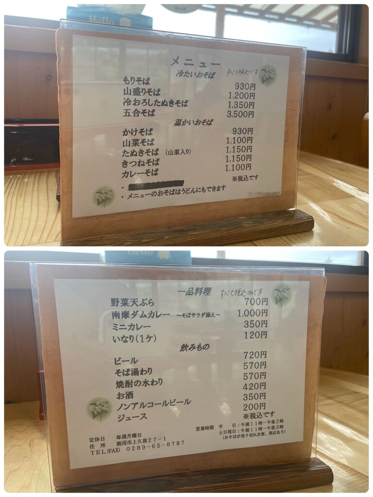通常 11:00~14:00 11:00~15:00(土・日・祝) ※そばがなくなり次第終了 |