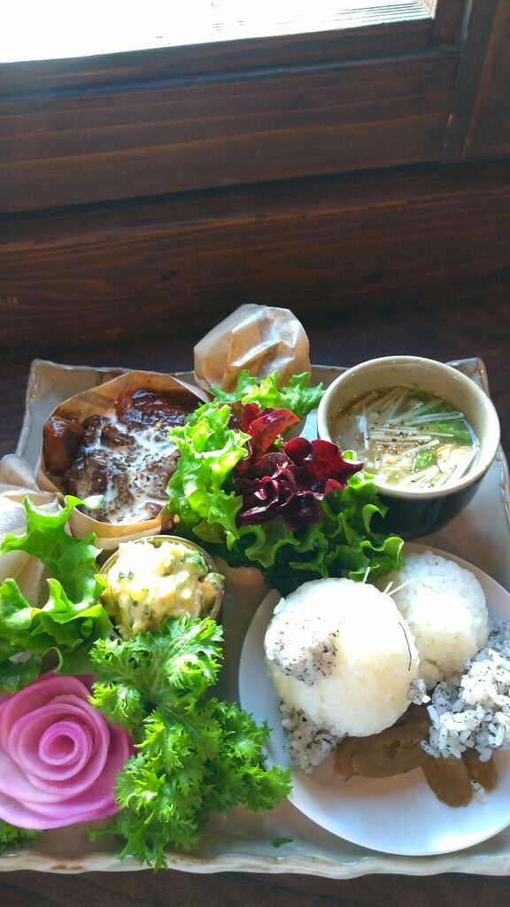 かっ...可愛い(*˘︶˘*)胸がキュンキュンしたランチ。¥2,200です。友人と予約をして初来店です。早く行きたい早く行きたいと、先月から楽しみで楽しみで、今日は充足感でいっぱい。柿のサラダ・チーズハンバーグ・豚汁・ねこちゃんのご飯・選べるドリンクのセットです。チーズハンバーグ大きくて厚みがありジューシー。ハヤシソースも濃厚で五臓六腑が喜んでいました。珈琲もたっぷりです。お庭の紅葉に心撃ち抜かれ、ねこちゃんに癒しをいただき、暖炉も心身共にポッカポカ♡次回は限定10食のランチを選び、来年1月にまた行こうね〜と友人と♪指切りげんまん♪しました。優雅な時間を過ごせました。全て美味しかった!‼ (訪問:2025/11/18)