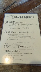 | ◇自家製ハヤシソースのハンバーグランチ (サラダ・スープ・ライス付) ※+400円でダブルハンバーグ(150g×2)に変更可能 |