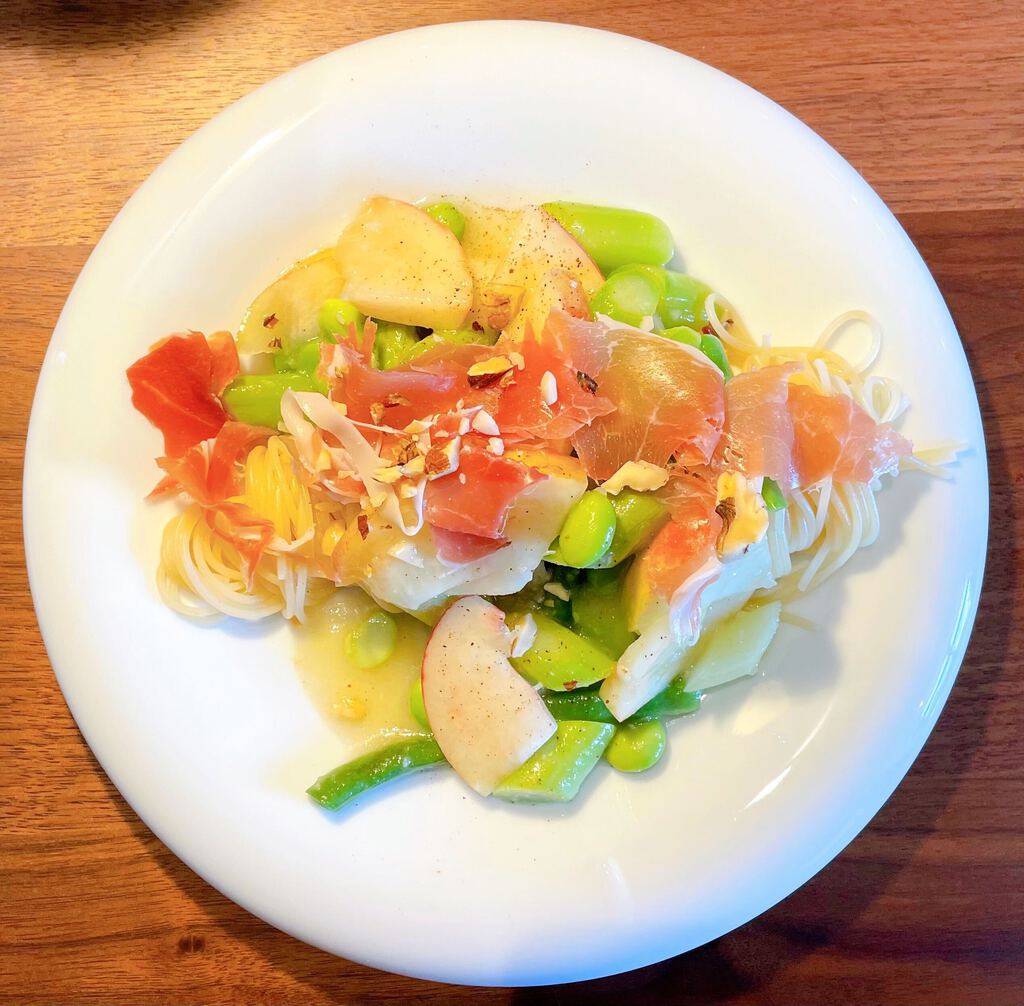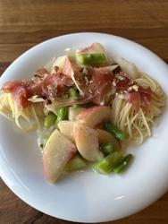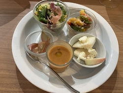 こちらのランチの前菜いつも楽しみにしています。ランチは桃の冷製パスタを食べました!桃が食べられて嬉しい♪甘くてちょうど良い甘さ!前菜にも桃が使われていて嬉しい。全て美味しく頂きました♪ (訪問:2025/09/27)