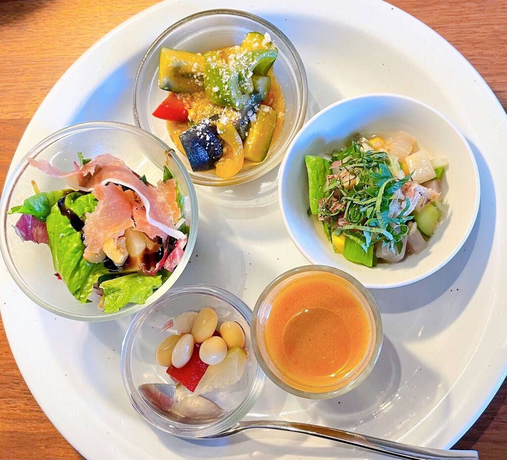土曜のお昼に予約して伺いました。ランチメニュー3種からパスタをチョイス。パスタは2種類から選べて桃の冷製をオーダー。お店の方お一人でしたが調理から配膳までテキパキお仕事されてました。前菜は5種類で、どれも手が込んでいて見た目も鮮やかで美味しい~ワインが飲みたくなりました。パスタは桃の他にアスパラや枝豆や生ハムも合わさって塩加減もちょうど良くずっと食べれそうな一品♪ドリンクも付いて幸せ満足なランチタイムになりました。次回はスイーツも味わってみたいです。入口のショーケースにはお惣菜類やスイーツなどテイクアウト品が並んでいて、コーヒーやクラフトコーラなどのドリンクもテイクアウトできるようなので、近くに来た際はぜひ利用したいです。 (訪問:2025/07/26)