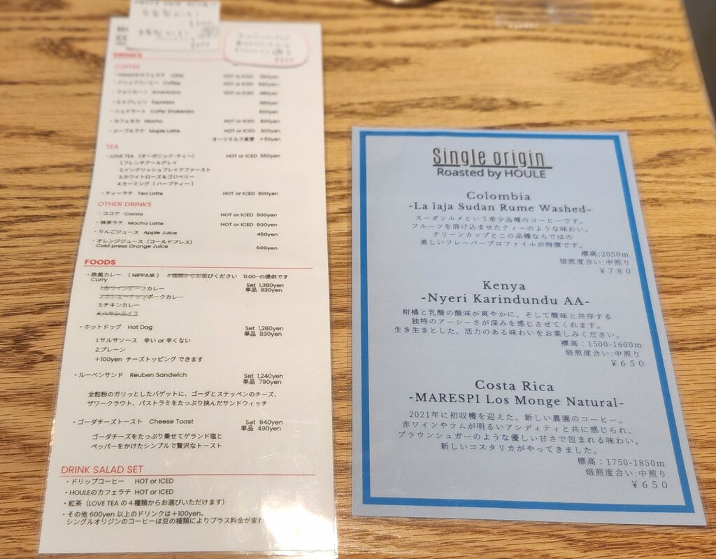 ドリップコーヒーは、猿田彦珈琲と自家焙煎をお好みや気分に応じて選んでいただけます。こだわりのアイスクリームは、素材を存分に活かした一品。モーニングでのご利用や、テイクアウトもぜひ!HOULEで過ごす時間が居心地の良い時間になりますように。