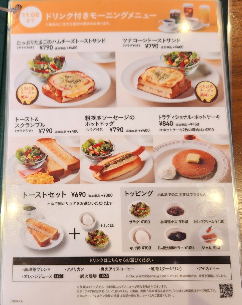 朝は美味しいコーヒーが飲みたいと意見が一致し珈琲館さんへ。サイフォンで淹れてもらうコーヒーの香り・まろやかさが最高です。今までと少し変わったメニューのモーニングの中から『たっぷりたまごのハムチーズトーストサンド』と『トースト&スクランブル』も一緒に。ブレンドコーヒーが美味しくて、毎回お代わりしてしまいます。(2杯目は嬉しい半額です!)みんなでホッと癒され満足!パワー充電して帰路につきました。 (訪問:2025/10/13)