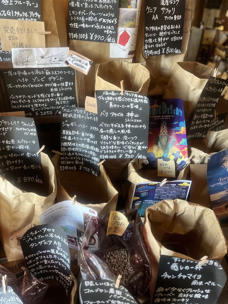 | 煎りたてのおいしいコーヒーを挽き売りしています。 | 100g/650円~ |