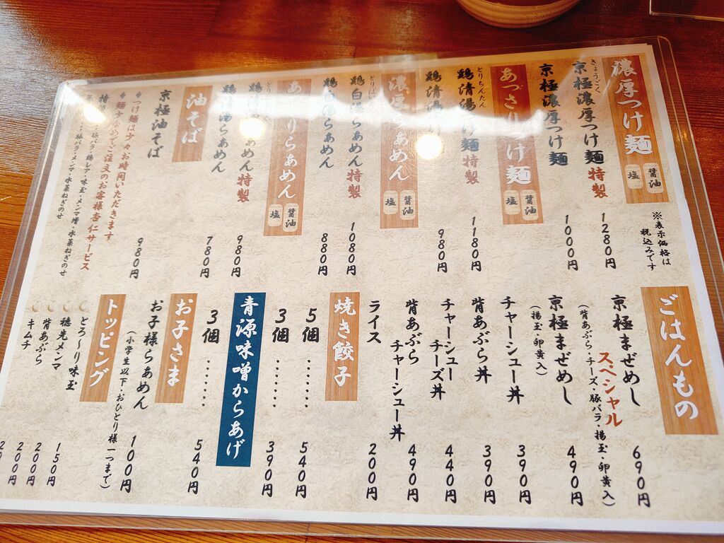 | 亰極濃厚つけ麺特製 | 1,280円 |