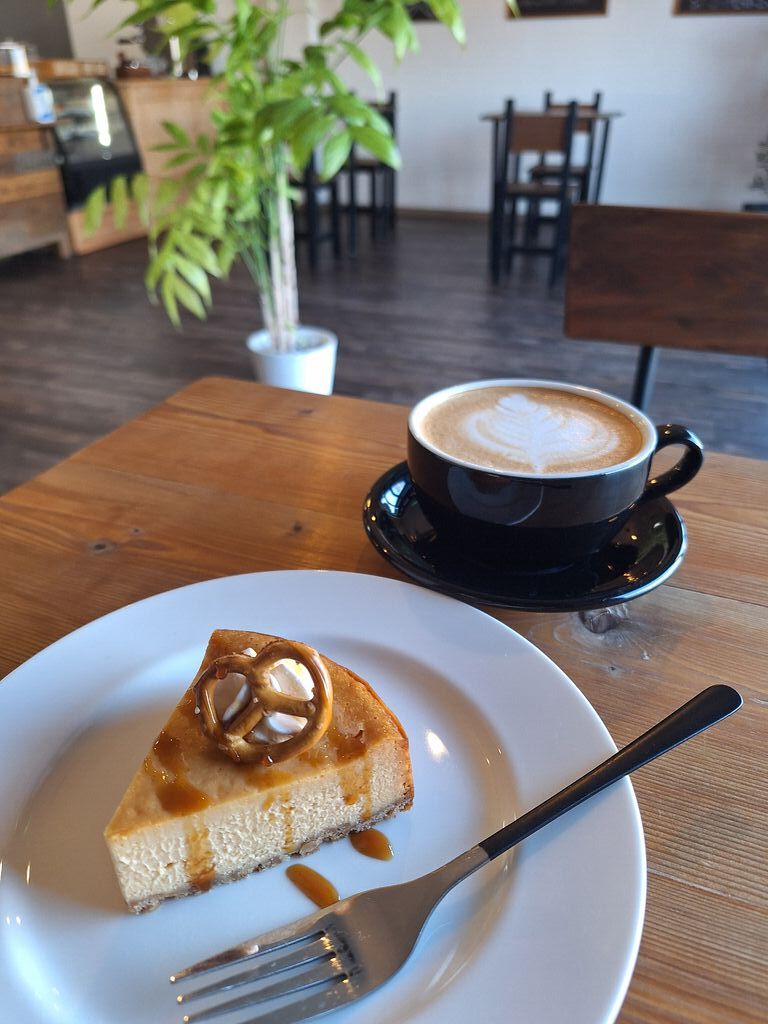 お久しぶりになってしまったこちら、美味しいケーキを楽しみに15時過ぎにお邪魔しました。ケーキの種類が豊富で目移りしまくり悩みまくりでしたが、『キャラメルチーズケーキ550円』『カフェラテ(シングル)600円』をお願いしお席でスタンバイ。珈琲の良い香りが漂い待ってる間も楽しみな状況。キャラメルの甘い香りとコクのあるチーズがマッチした癖になるお味☆美味しくてついつい珈琲をほったらかしに。シングルでお願いしたカフェラテは、ビターすぎずミルク感強めすぎず、ちょうど良いお味でチーズケーキとの相性もとっても良く、まったり癒しタイムになりました♪ (訪問:2026/01/11)