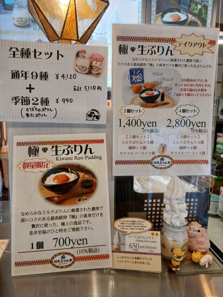 | 日光ぷりん | テイクアウト 450円 イートイン 458円 |