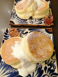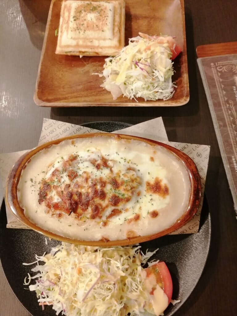 「美味しいパンケーキ食べに行こっ♪」…友人からお誘いを受け午後6時頃お邪魔しました。あ~!知ってる!知ってる!気になってたお店で行きたいと思ってた私は初訪問です。ヤシの木が生い茂るエントランス…外観からステキな感じ。中に入るとまたまたオシャレでステキな雰囲気です。[ハンバーガー]と[パンケーキ]がメインのようですが…[ナポリタン]ならぬお店の名前にかけた[ラボリタン]や季節限定[ちたけうどん]も美味しそう。今日は冬のような寒さだったので私は[ドリア]をお願いしました。友人は[ホットサンド/ツナ]です。そしてパンケーキは迷いに迷ったのでお店の方オススメの[生クリーム・メイプル]に決定♪熱々トロ~リの[ドリア]はホワイトソースにのび~るチーズとトマトがめちゃ美味しいです。[パンケーキ]は口の中で溶けてしまいそうなくらいふわっふわ♡全然重たくない甘さでペロリです。本日の[アイス]はメロン…濃厚甘々でこちらも美味しいです。居心地が良くついつい長居してしまいラストオーダーの時間に。他にも美味しそうなメニューがたくさんあったし、テラス席でランチも食べてみたいな♪またお伺いしたいと思います。ごちそうさまでした•ᴗ•ꕤ* (訪問:2025/10/22)