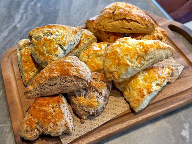 ボリューム満点なハンバーガー。ふわっふわなパンケーキ、焼きたてスコーン、オリジナルコーヒーと一緒に。どれも絶品!!