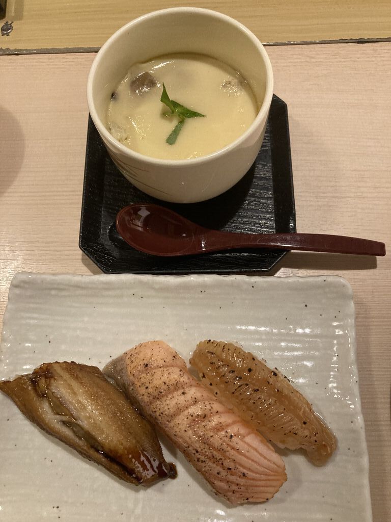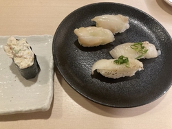 休みの日だったけど、変な時間(多分4時代)だったせいかガラガラですぐに席に通していただけました。帰る頃には結構混んでいたので、次回もずらしていこうかな。頼んだお寿司全部おいしかったのですが、塩レモンで食べる特選四種がとにかくナイス。活〆真鯛、いか大葉巻き、炙りトロサーモン、あぶり〆鯖 素材の良さが感じられる一皿。写真以外もたくさん食べたけど、ハズレなし。満足度高かった。あと、多分期間限定かもしれないですが、仙台の有名な銘菓、喜久福がデザートにラインナップされてました。幸せ! (訪問:2025/09/23)