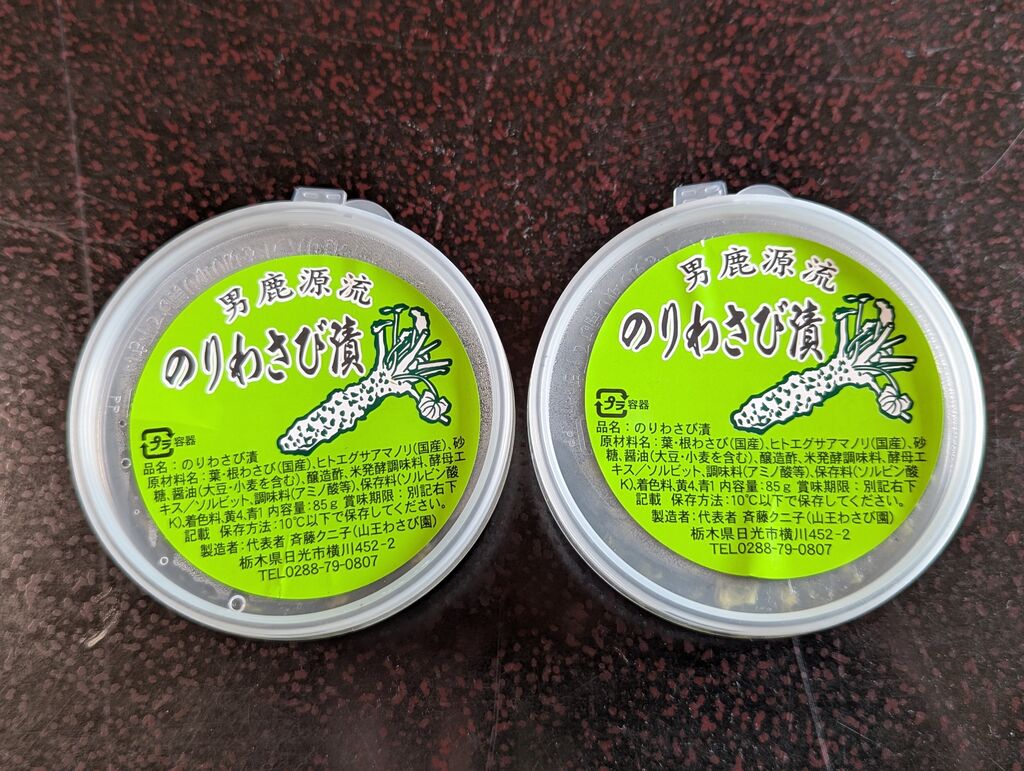 皆さんのクチコミを拝見していて【のりわさび漬】を食べてみたくなりお店に伺いました。いろいろと試食もさせてもらい、【わさびのり】と【わさびふりかけ】も購入。のりわさび漬はご飯のお供に最高です!ツンと鼻に抜けるワサビの辛さがクセになります。夏場の食欲が落ちた時にも、ご飯にふりかけをかけたり、わさびのりを巻いたおにぎりなどを作って食べたりして暑い夏を乗り切りました。あっという間に無くなってしまったので、また買いに行かねばと思ってます。 (訪問:2025/09/10)