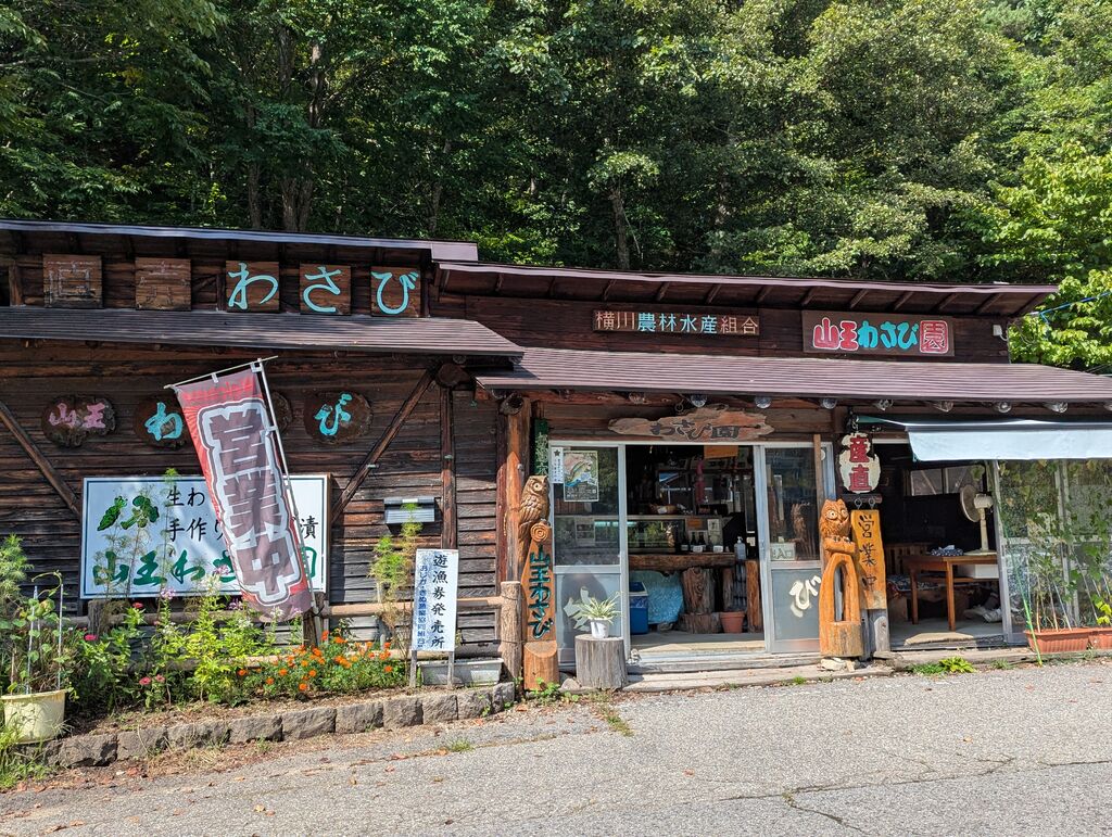 山奥にある 小さなわさび屋さん♫店主のおじさんに色々説明されて、何種類か試食させてもらいました。お土産に【わさびふりかけ】【わさびのり】【のりわさび漬】を購入~。全部オススメだけどその中でもオススメなのが【のりわさび漬】程良いわさびの風味と辛さが絶妙なバランスで、葉・根わさびの食感も楽しめてご飯何杯でも進む~(笑)生わさびは残念ながら売り切れていて買う事が出来なかったので、次回の楽しみにまた訪問しまぁ~す٩(ˊᗜˋ*)و (訪問:2025/09/10)