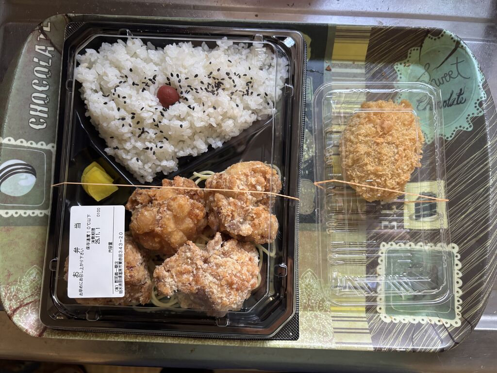 夕飯のお弁当を買いに伺いました♪目当ては、豚丼の大盛りでしたが、売り切れていて普通盛りしか残っていませんでした。考えた末、間違いのない美味しさの唐揚げ弁当にしました。コロッケもひとつ。夕食が楽しみです♪ (訪問:2025/11/01)