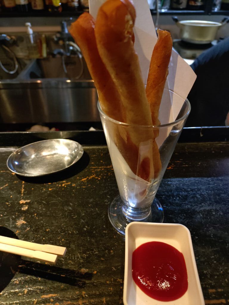 仕事帰りに、富乃家に寄り、富乃家特製メニューをいただきました。今回は、いただいた富乃家特製メニューについて、お話をしたいと思います。いただいた特製メニューは、写真に掲載しました通り、鉄人特製ナポリタン、ベーコンピザパリパリスティック、パリパリウインナーになります。いずれのメニューは、富乃家にしかないメニューです。鉄人特製ナポリタンは、美味しいソースと美味しい麺の食感が合わさった美味しいナポリタンです。 パリパリスティックは、ピザ風味の美味しいスティックです。これは僕も好きです。パリパリウインナーは、ウインナーを春巻きやワンタンの皮でウインナーを包み、そして、揚げた美味しいお料理です。富乃家の美味しいイタリアン系メニューです。皆さんも、是非、食べてみてください。今回も読んでいただき、誠にありがとうございました。 (訪問:2025/09/12)