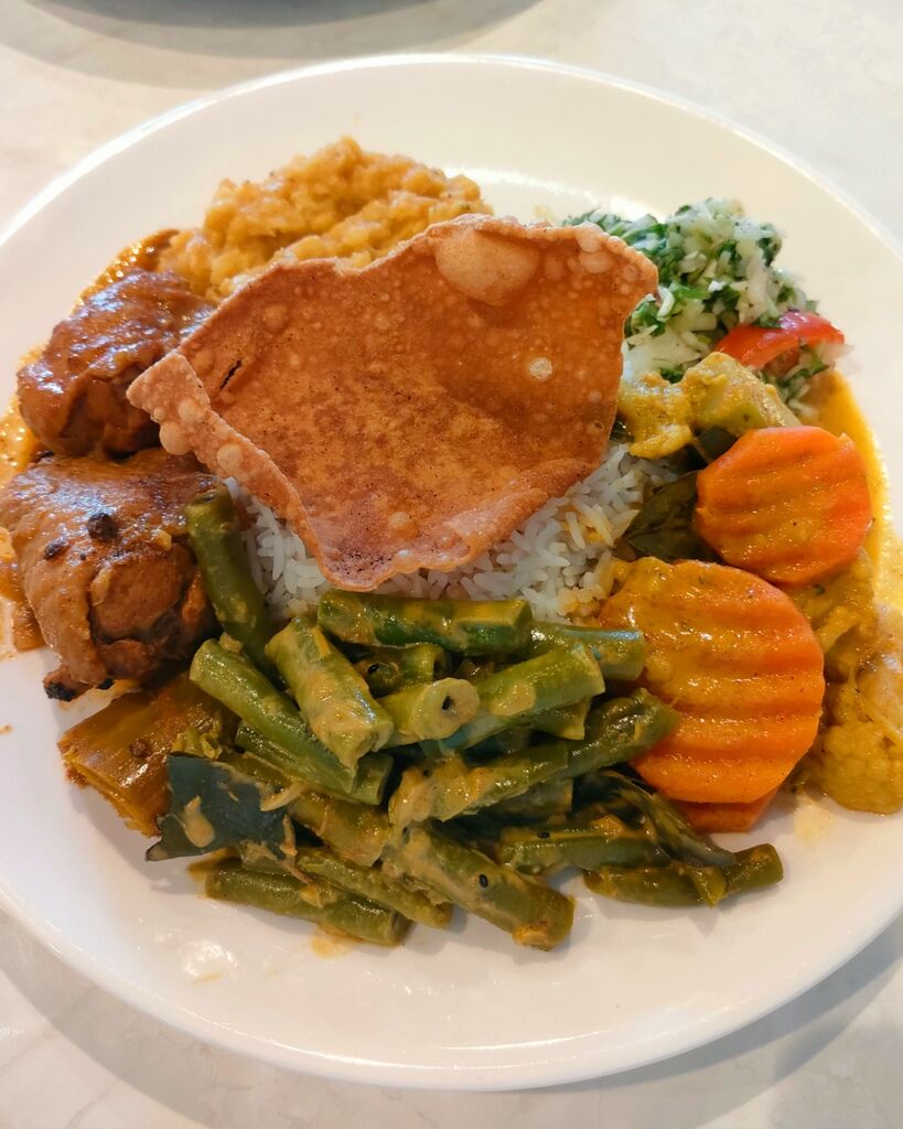 スリランカ料理ということで珍しいので、ランチ時に食べに行きました。カレーセット 1000円をいただきました。スパイスが効いていて辛い!鋭い辛さがあります。しかし、残る辛さではないので、また次の一口が食べたくなる辛さです。いろいろなお惣菜も食べられて堪能できました。ごちそうさまでした。 (訪問:2024/09/14)