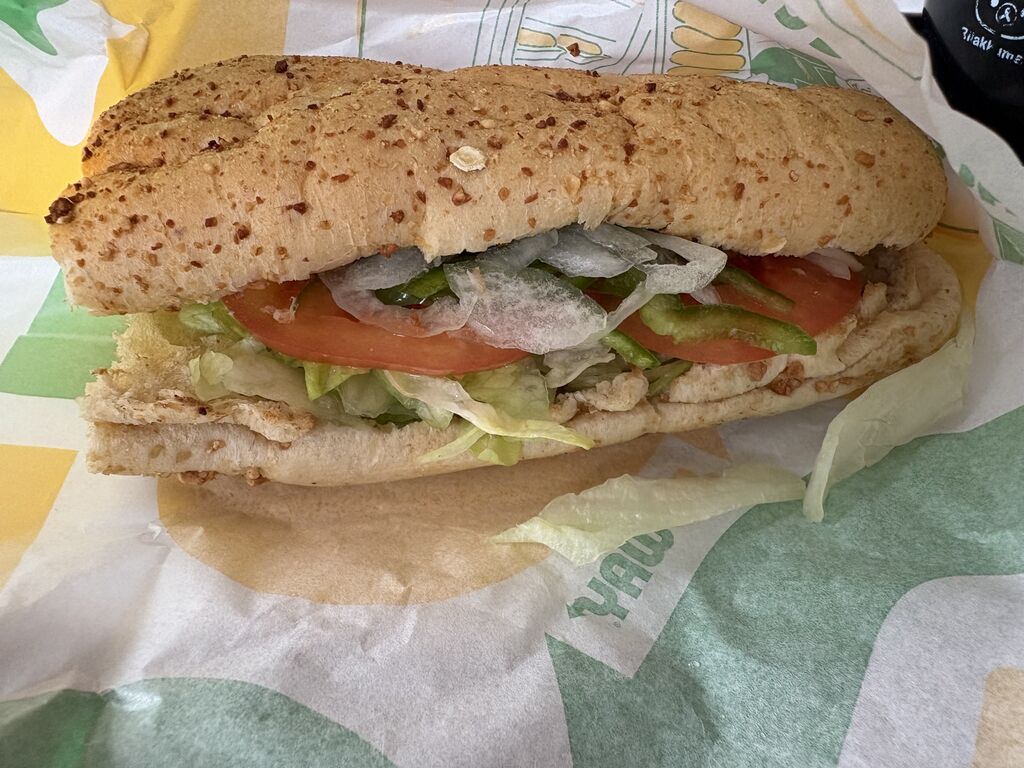 久々のサブウェイ。学生の頃はしょっちゅう食べていたので、懐かしかった。なんでずっと行かなかったんだろう。一度食べると、次回はなに食べようかな、と楽しみができました。行く前からネットでメニューを見て照り焼きチキンにしようと決めていたのですが、お昼のお得セットになっている数種類の一つで得した気分になりました。ドレッシングはわさび醤油にしましたが、よく合っていました。追加で頼んだチキンホワイトポタージュも美味でした。 (訪問:2024/08/15)