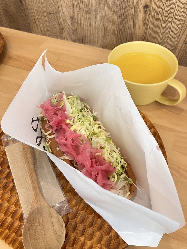 久しぶりにTONYA.さんのホットドッグが食べたいな~と思い立ち、お昼ちょっと前に神様と一緒に伺いました。私は「プレーン600円」を、神様は「タルタルフィッシュ700円」を注文。寒かったので「季節のスープ(かぼちゃ)600円」もいただきました。ふんわりコッペにお野菜もりもり、プリっとしたソーセージにブルーベリーマスタードのソースがよく合います。神様のフィッシュも安定の美味しさ。かぼちゃのスープはとろりと濃厚で、まるでかぼちゃをそのまま食べているかのような美味しさでした。新店舗の準備が着々と進んでいるようで、新たなお店のオープンが楽しみです。美味しい幸せをありがとうございました。ごちそうさまでした~。 (訪問:2025/12/28)