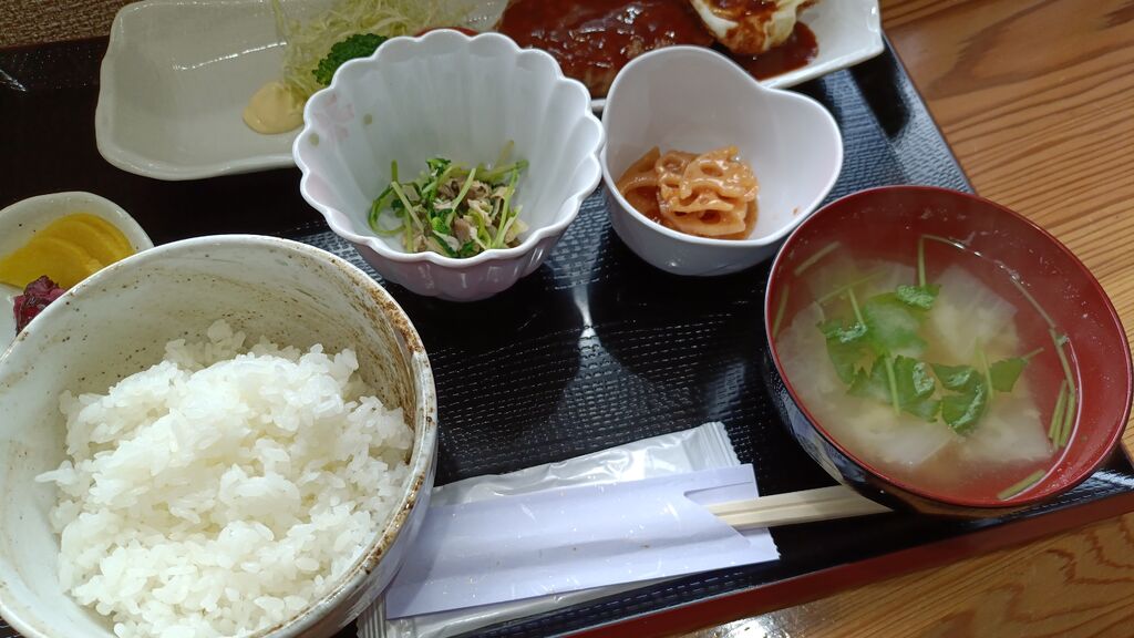 窓際でお座敷に並んで腰掛ける椅子に座り悩む。小料理屋さんで、夜メニューに魚が多かったから美味しいだろーなぁ~と迷ったけど《ハンバーグ定食¥1000》に決定♪お膳が届いた瞬間「わぁ~」と感動~定食なのにキチンとしていて清潔感があり、ご主人の丁寧さが伝わって来ました(*ˊ˘ˋ*)♪ご飯は柔らかめで、味噌汁は具だくさんで少し薄めの味。小鉢も手抜き感なくレベルが高い!!ハンバーグは弾力のある食感で下味がしっかりありました。ソースは少し濃いめでご飯進む~(笑)他の定食も気になる~(ૢ˃ꌂ˂⁎)また来まぁ~す♬ (訪問:2025/10/31)
