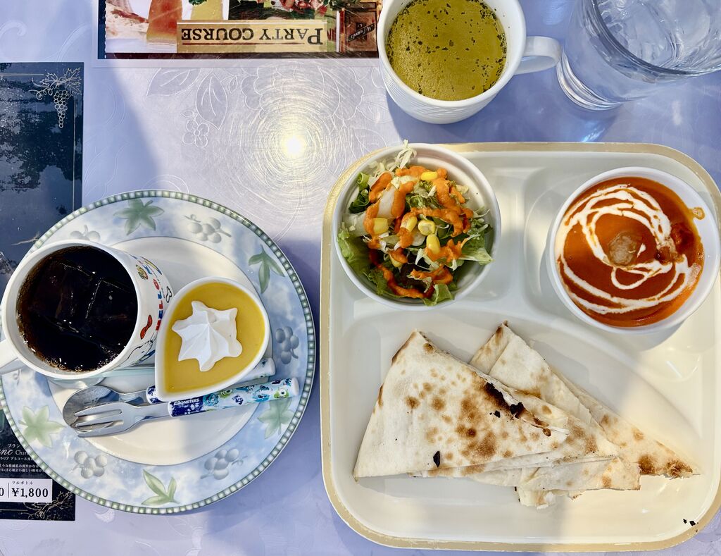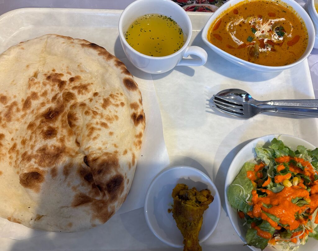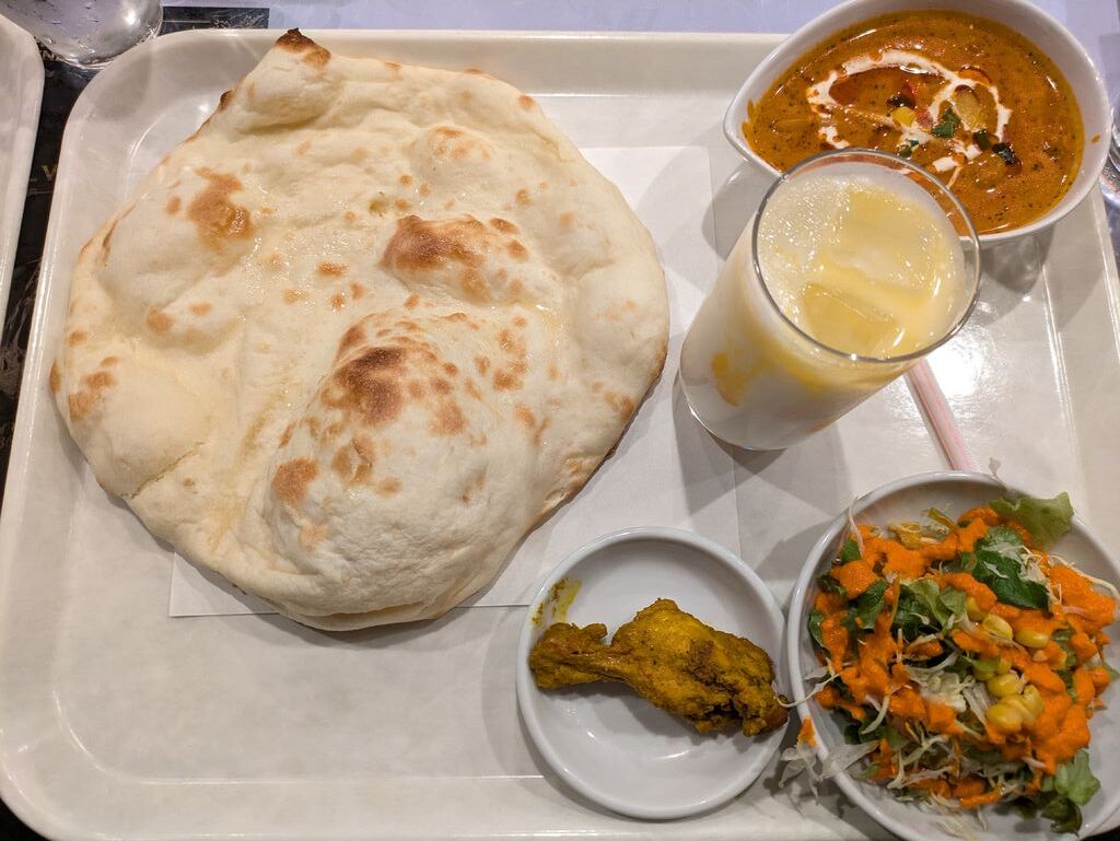ディナーをしに行ってきました。注文はディナーセット、選べるカレーを海老マサラの辛口でお願いしました。辛さが辛口でやや心配でしたが、海老マサラ自体が甘みのあるカレーで、辛すぎず美味しく食べることができました。海老も柔らかくプリップリでした。辛味を感じた時もラッシーが口の中を癒やしてくれるので安心です。チーズナンを分けてもらいましたが、たっぷりのチーズが挟んでありボリュームが凄かったです。チーズとナンの甘みが口いっぱいに広がります。ボリュームたっぷりのセットなので、ナンのおかわりをしなくてもお腹いっぱいになりました。 (訪問:2025/12/20)
