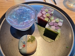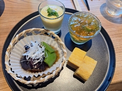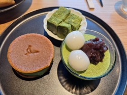 ずーっと気になっていたこちらの『アフターヌーンティー4400円』。事前予約制のため、なかなか伺えずしまいでした。が、念願かなってようやくのチョイス!13時到着でお席はほぼ満席。最初にウェルカムティーの抹茶が登場。干菓子も付いてなんとも素敵なおもてなし。香りの良い抹茶ですっかりリラックス。そうしているうちに三段重ねのスイーツとセイボリーが登場‼和のテイストのアフターヌーンティーはお初。ワクワクしちゃいます。シソと生姜が効いた美味しいお稲荷さんはお持ち帰りしたいくらい美味しいし、茄子の揚げ浸し、夏野菜のジュレ、とうもろこしの冷静ポタージュと夏野菜満載で最高♪卵焼きも絶品。真ん中は抹茶尽くしのスイーツ。濃厚なお味でどれも香りも良く、特にわらび餅が絶品でした^^一番上は練り切りに羊羹、バタフライピーの杏仁となっており、夏をテーマにした数々。もちろんどれも美味しく、特に羊羹は涼やかでツルッとした食感が、暑いこの日にぴったりすぎて最高でした☆お茶は、しずかを冷でチョイス。もちろん爽やかなお味で美味しく、大満足すぎました‼季節によって内容が変わりそうな予感。是非ともまた予約してお邪魔したいです。 (訪問:2025/08/24)