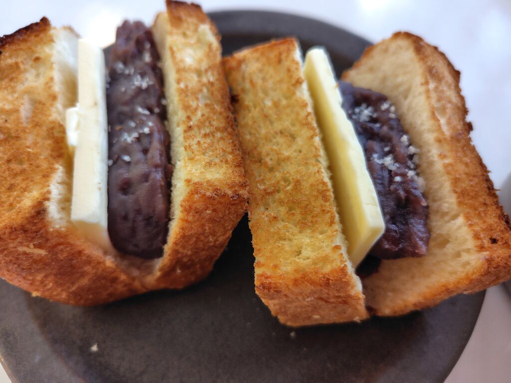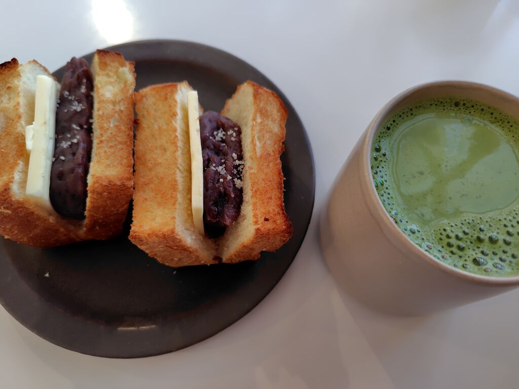 お昼ご飯を食べ損ねてこちらを思いつきました。【あんバターサンドのセット(1100円)】を店内で食べました。飲み物は抹茶オレのホットにしました。サンドには少しだけフランス産ゲランドの塩がかかっていて、それがあんこの甘みを引き立たせていて美味しいです。1年半ぶりに伺ったので席が増えていたりランチメニューが出来ていたりと進化していました。14時までならランチの『季節のおてあてごはん』が食べられたと知り、もう少し早ければと残念に思いました。次回は野菜がたくさん使われている『おてあてごはん』を食べたいです。 (訪問:2025/09/06)