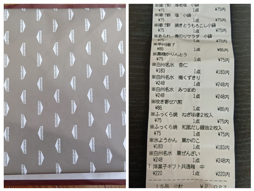 「山梨県産シャインマスカットのレアチーズタルト」475円はシャインマスカットの甘味とレアチーズの程よい酸味みがマッチし、「ふんわりロール」226円はさっぱりした甘さでどちらも美味しかったです♪御佛前で、バラ売りの煎餅、和菓子類を箱詰めしてもらいました。喜んでもらえて良かったです✩ (訪問:2025/09/23)